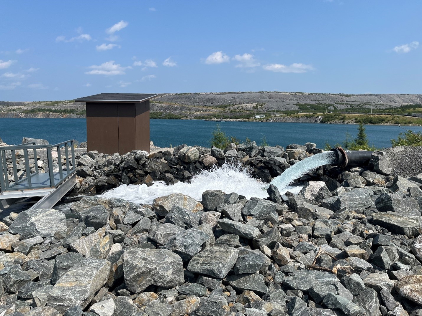 Photo 2 : L’eau pompée de la fosse J4 est traitée avant d’être libérée dans l’environnement. La température, le niveau de pH et le débit sont continuellement surveillés.