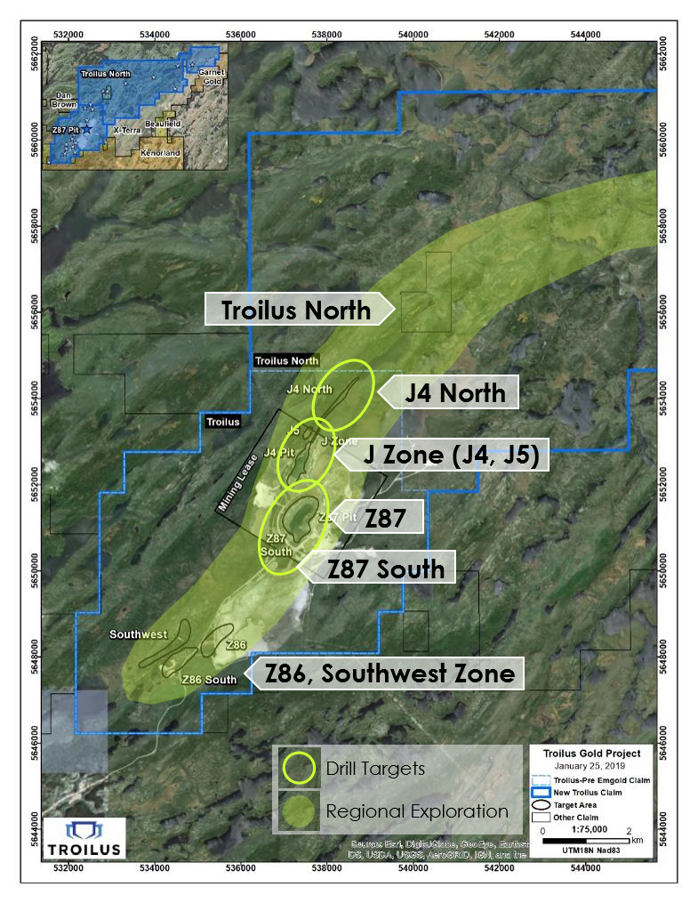 Troilus plans to drill over 40,000 metres as part of its 2019 Exploration Program, targeting zones Z87 South, the J Zone, Z87, and J4 North (See Figure 3).