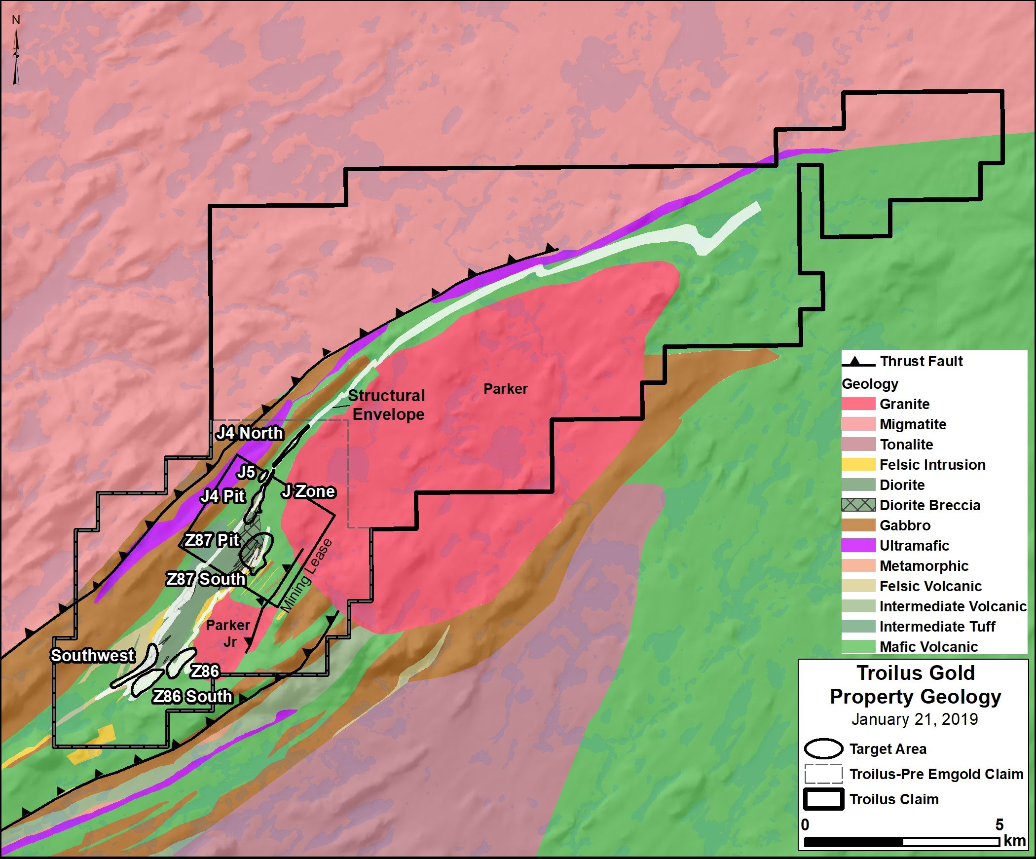 March 26, 2019, Toronto, Ontario – Troilus Gold Corp. (TSX: TLG; OTCQB: CHXMF) (“Troilus” or the “Company”) reports initial results from the 2019 exploration program at its Troilus Gold Project, in Quebec, Canada, including the discovery of a new gold-mineralized zone in the southeast portion of the J Zone.