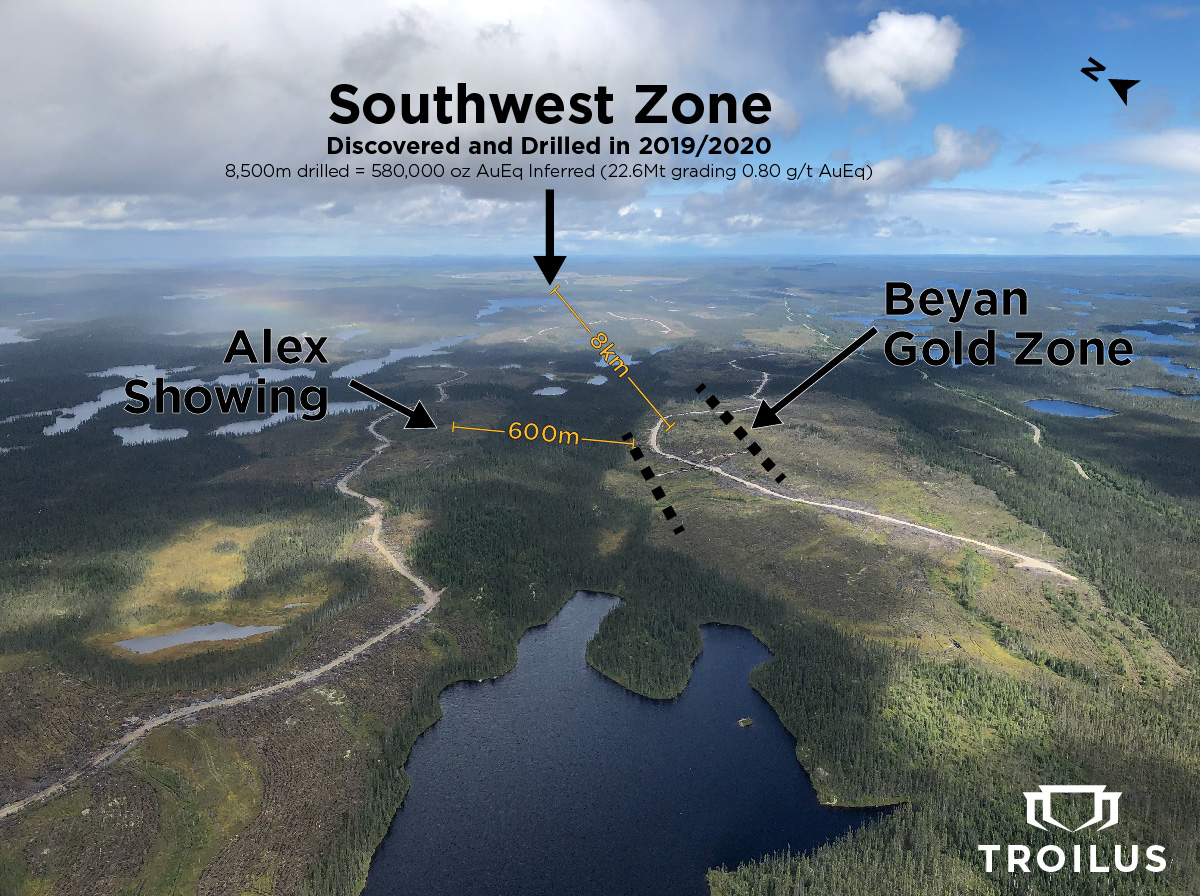 « Ces résultats positifs répétés de nos efforts d’exploration régionale cette année, ainsi que les découvertes récentes tout près de notre territoire minier, commencent à confirmer le formidable potentiel de la ceinture de roches vertes de Frotêt-Evans, qui devient rapidement l’une des ceintures d’exploration les plus prometteuses au Canada », confirme Justin Reid, chef de la direction de Troilus. « Nous avons dépassé nos attentes en ce qui concerne le programme d’exploration régionale de 2020, qui se consacrait à cerner de nouvelles cibles très prometteuses dans notre territoire minier nouvellement acquis. Nous continuons à concentrer nos efforts sur l’avancement de la mise en valeur des principaux secteurs minéraux Z87, J et maintenant le secteur sud-ouest. Nous estimons cependant que ces résultats d’exploration régionale valident le potentiel à long terme du développement du minerai dans le cadre du projet Troilus. Quatre forages se déroulent sur le site, dont l’objectif à plusieurs volets est de prolonger la ressource au secteur sud-ouest, de reclasser les secteurs Z87 et J, ainsi que d’effectuer des forages géotechniques qui viendront étayer l’étude de préfaisabilité en cours. »