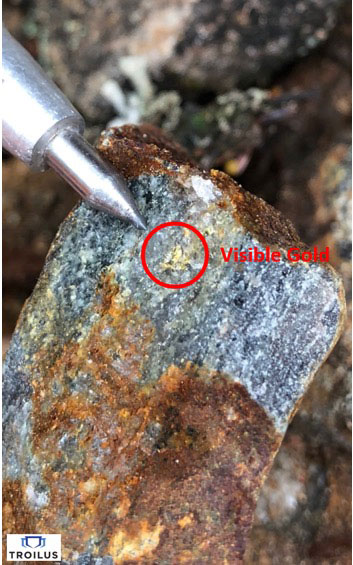 Image 1: Visible gold from sample TLG-TJ4N-18-JB-134 (110 g/t Au)
