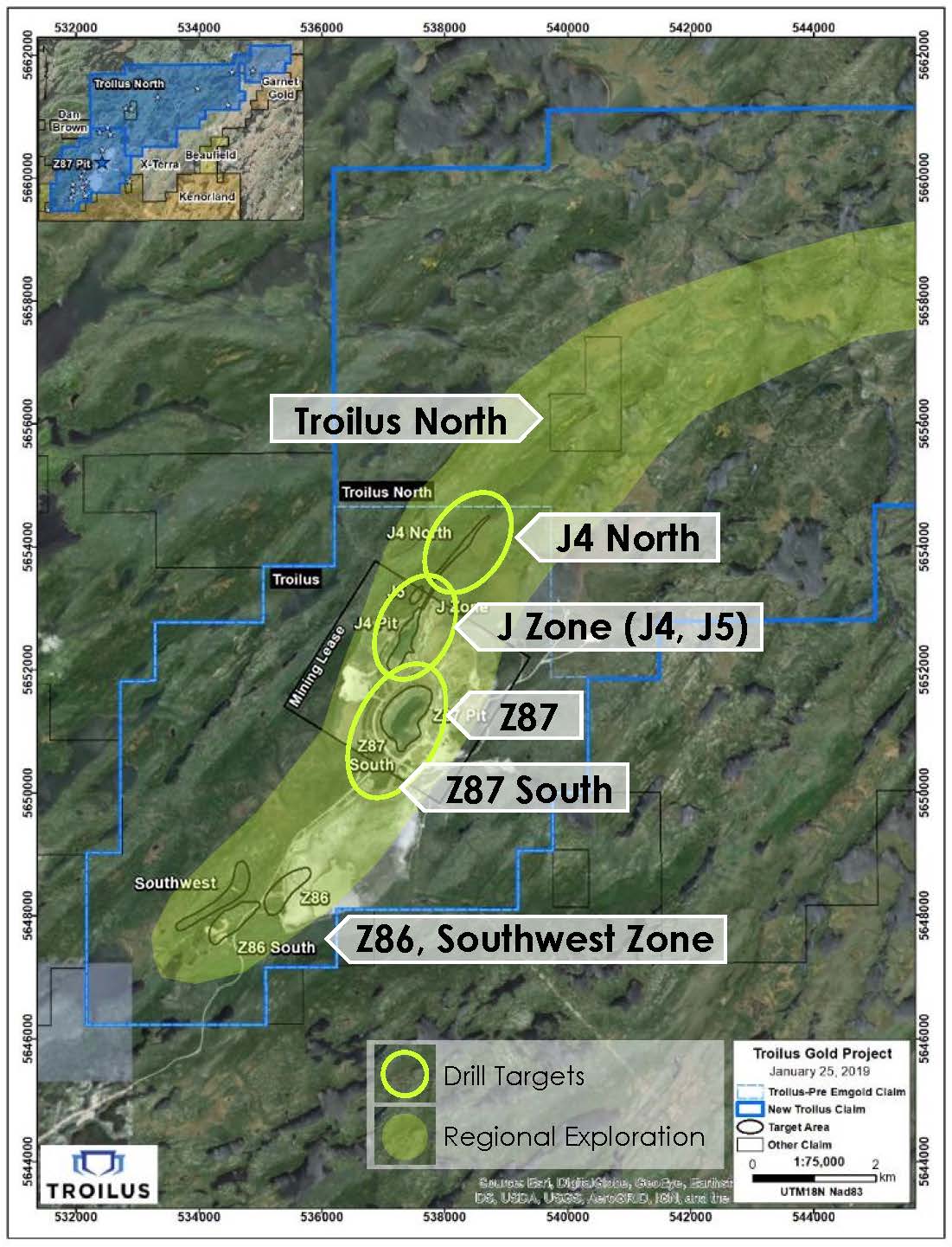 February 7, 2019, Toronto, Ontario – Troilus Gold Corp. (TSX: TLG; OTCQB: CHXMF) (“Troilus” or the “Company”) initiates its 2019 Exploration Program on its 100%-owned Troilus property (the “Troilus Project”) located near Chibougamau, within the Frotêt-Evans Greenstone Belt in Quebec, Canada.