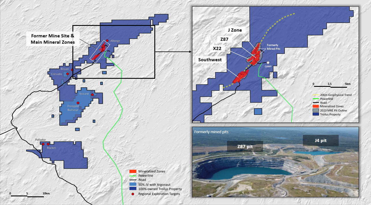 Figure 2. Carte de localisation du projet Troilus et localisation des gisements minéraux
