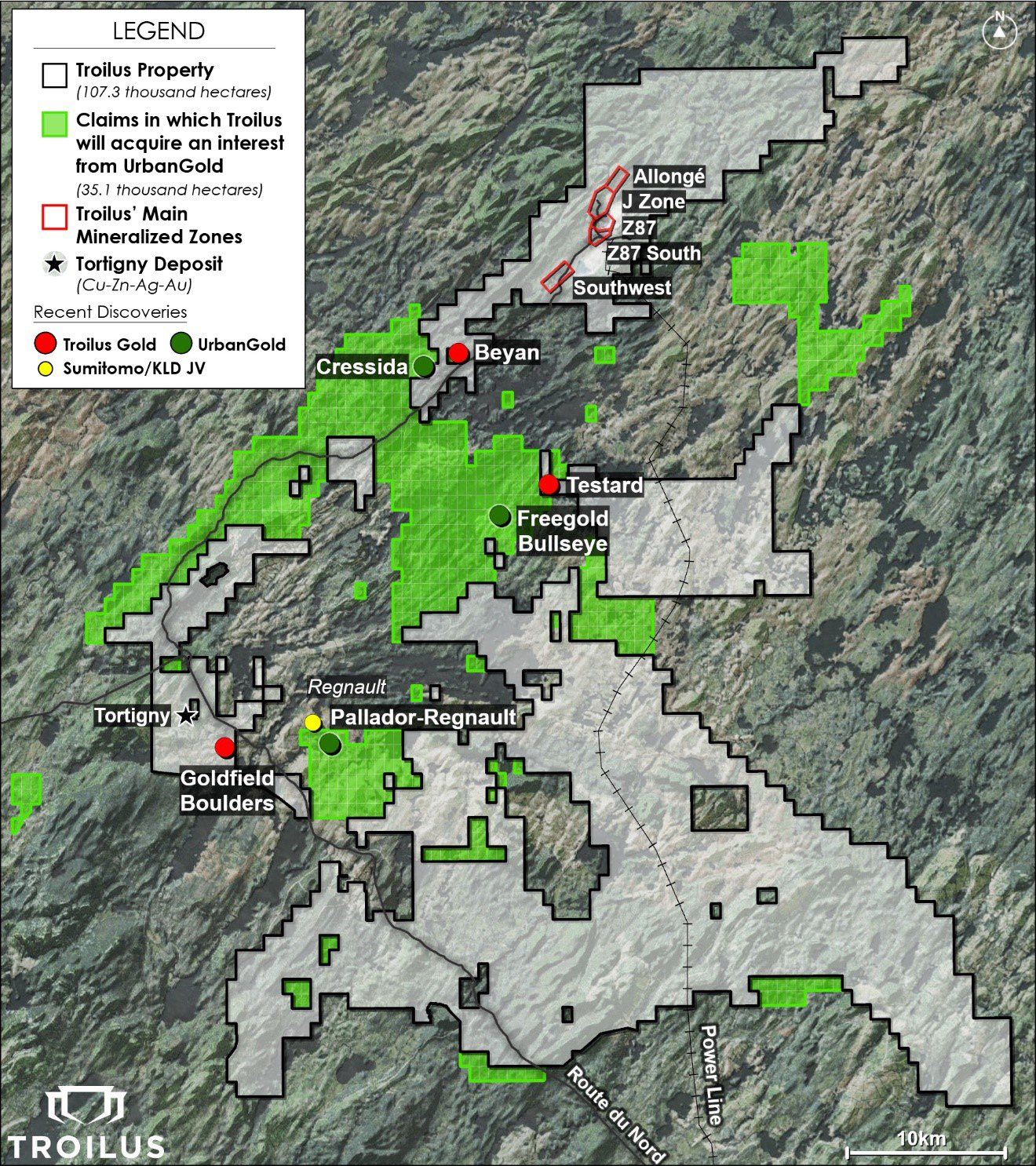 « L’acquisition d’UrbanGold s’inscrit dans l’objectif que Troilus s’est fixé de valoriser un actif de production à moyen terme tout en exécutant une stratégie de développement qui repose sur un portefeuille élargi d’actifs d’exploration et de début de la phase de mise en valeur au sein de la ceinture de roches vertes de Frotet Evans et au Québec. Nous nous réjouissons à l’idée d’accueillir les actionnaires d’UrbanGold au sein de l’actionnariat de Troilus et de poursuivre ensemble notre chemin vers la réussite », a déclaré Justin Reid, chef de la direction de Troilus.
