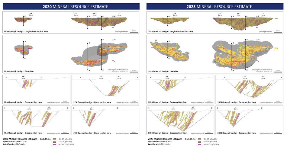 Coupes transversales de l’estimation des ressources minérales 2020 vs. 2023